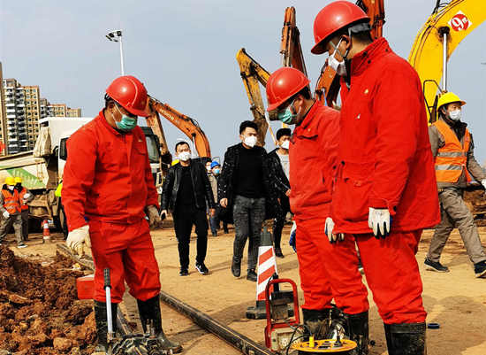 继1月26日完成300米管道迁改并恢复供气后,根据火神山设计方案的不断调整,武汉东方中油燃气公司持续跟进,快马加鞭配合施工进度。1月27日下午17:00时,公司迅速派人到现场进行踏勘,并现场制定了方案。1月28日上午8:00,公司应急施工队再次赶赴火神山现场,进行管线迁改施工工作,将于晚上12时完成管道的连接工作,确保正常供气。