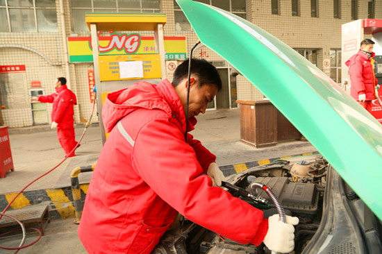 此時已是爆竹聲聲,一家人團聚在一起舉杯。加氣站裡依舊人來車往,每個加氣機旁都有工作人員忙碌的身影,每輛駛離氣站的車都帶著滿滿的祝福,送給四面八方趕路回家過年的人們。
