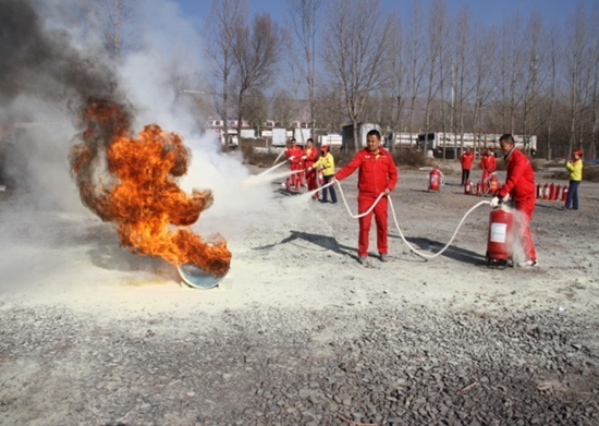 青海中油壓縮天然氣銷售有限公司根據冬季用氣要求和新入職員工實際需要,於11月23日開展了消防滅火實戰演練。