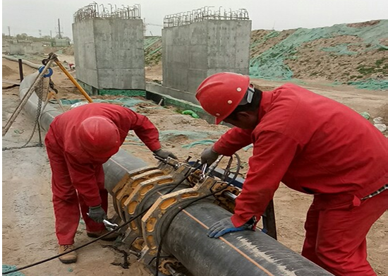 不同于其他城市的綜合管廊,西寧市的天然氣管道廊體採用的是“掛耳艙”的方式,不規則角度、坡度很多,而且是與管廊主體同時施工,存在交叉作業,這就對燃氣管道施工增加了很多難度,但這些都阻擋不了“專業化機組”施工的腳步。作業中心從聚乙管道的材料特性出發,依託於多年的PE焊接施工經驗,在施工的過程中開發出許多新的焊接輔助方式,從而很好的克服了諸多難題,保證了管廊工程的順利進行,也為今後的工作積累了寶貴的經驗。