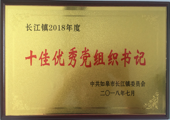 南通公司譚彥獲長江鎮“十佳優秀黨組織書記”稱號