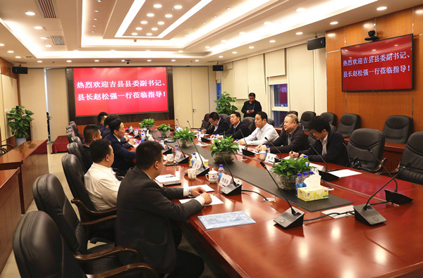 許鐵良主席簡要介紹了集團事業發展情況,表示十分看好吉縣的發展前景和投資環境,對集團在駐地產業佈局和長遠發展很有信心;趙松強副書記介紹了吉縣的基本縣情和經濟社會發展狀況,以及吉縣未來宏大的發展計畫和美好的藍圖,指出吉縣脫貧攻堅取得重大成果,目前正走在鄉村振興路上,將進一步優化投資環境,為企業在當地發展提供助力和保障。會談結束後,賓主共同出席吉縣集聚區特許經營簽約儀式。