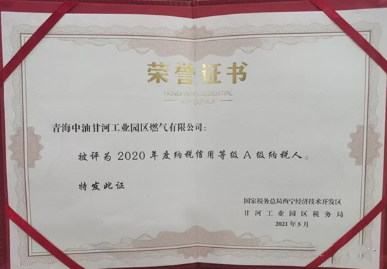 近日,在國家稅務總局西寧經濟技術開發區甘河工業園區稅務局開展的2020年度納稅信用等級評定工作中,青海甘河公司榮獲“A級納稅人”稱號。
