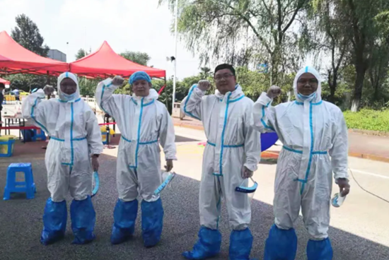 36℃的豔陽天下,密不透風的防護服變成了貼身的蒸籠,汗水順著臉頰向下淌,橡膠手套內結滿了汗珠,即便靜坐不動,熱氣也蒸得人汗如雨下。儘管悶熱的防護服、炎熱的天氣令他們汗流浹背,但他們仍然默默堅守了4個小時,耐心為市民解答問題,指引市民填寫基本資訊,作分流引導,錄入採樣資訊…確保核酸採集工作有條不紊進行,為這一次的核酸檢測保駕護航。此次志願活動,展現了中油人的良好形象,以擔當詮釋初心,用行動踐行使命,真正為群眾辦實事,為防疫獻力量。