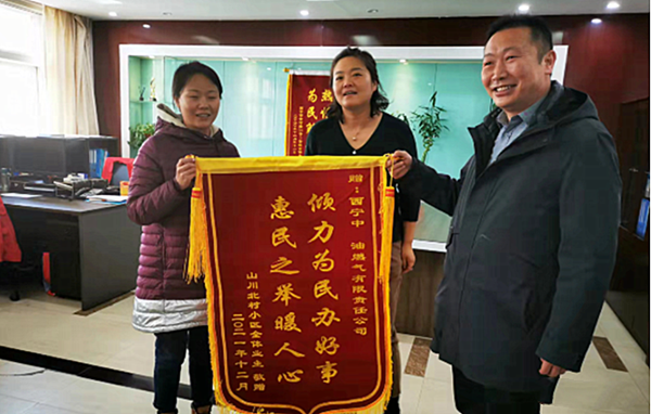 2月21日,西寧中油燃氣有限責任公司收到山川北村社區全體業主送來的一面印有“傾力為民辦好事、惠民之舉暖人心”的錦旗,誠摯感謝公司在安裝管道天然氣過程中給予的大力支持和幫助。