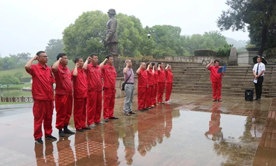 6月21日上午,阴雨绵绵,寄托着对先烈的无限哀思。一行人来到武汉抗战纪念园前,在雨中排列整齐,一同高唱中华人民共和国国歌,并敬献花篮,向英勇献身的烈士默哀致敬。随后,在革命先烈的见证下,全体党员神情庄重,坚定地举起右拳,重温入党誓词。简单的缅怀仪式,却饱含着对先辈的崇敬。仪式结束后,大家参观了纪念馆,跟随者讲解员的脚步,大家观看了一件件珍贵的革命文物,军民浴血奋战的照片、珍贵的抗战文物、日军侵华罪证等,深深震撼人心。