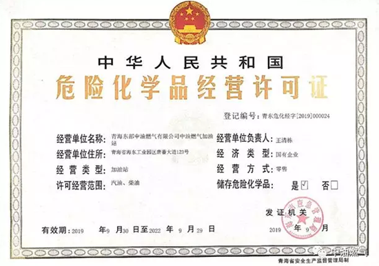 为使各项目达到合规化运营条件,青海东部中油燃气有限公司于年内进一步加大了与海东市政府、河湟新区管委会及平安区政府的工作协调力度,取得了较好的沟通效果,经过近两个月的积极沟通和努力,终于在近期取得了平西加油站《危险化学品经营许可证》。