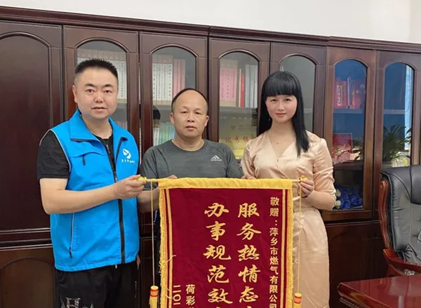 7月14日,萍乡市加州阳光小区旁的荷彩私房菜店主向萍乡市燃气有限公司送来一面写有“服务热情态度好办事规范效率高”的锦旗,对萍乡市燃气有限公司工作人员高效、规范的服务表示真诚的感谢。