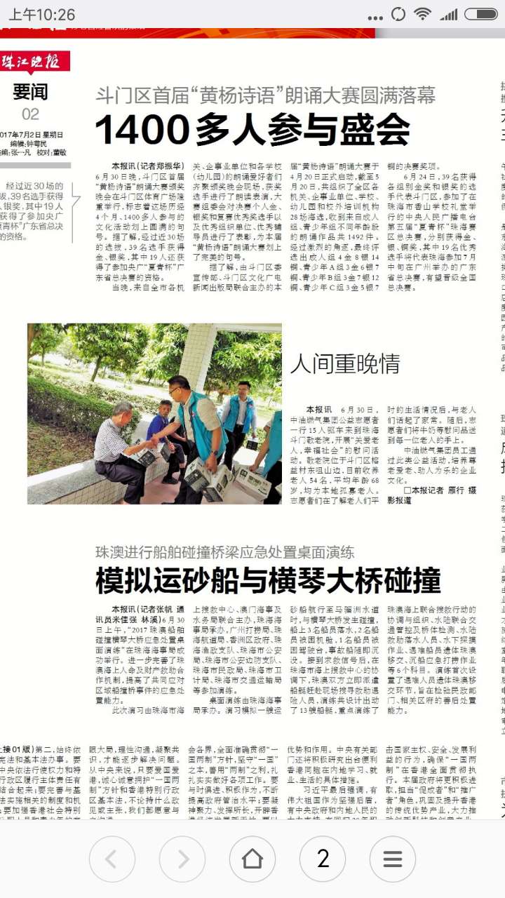 《珠江晚报》7月2日报道“人间重晚情”