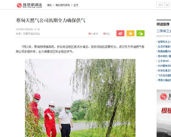 《凤凰网》:蔡甸天然气公司汛期全力确保供气