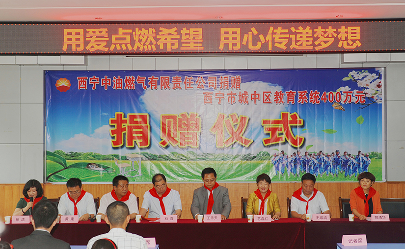 2013年7月5日,西宁中油燃气有限责任公司对西宁市城中区教育事业捐赠400万元,用于更新、更换该区部分学校的桌凳。时任西宁中油燃气有限责任公司董事长王乐天、总经理尚龙庆和城中区四大班子的领导,出席了当天的捐赠仪式。