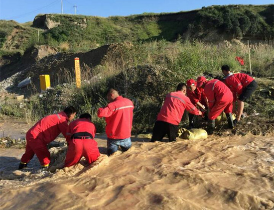 在各级领导正确指导下,各抢险小组分工明确、团结协作、有条不紊地积极开展抢险工作,他们不畏艰难险阻,排除万难,为的只是能够将公司“生命线”早点修复完毕,消除安全隐患,确保平稳供气,积极争取抢险的最佳时间点。看着一张张充满战斗激情的脸庞,一套套被雨水淋湿的衣服,他们舍小家,为大家,时刻秉承中油燃气“大我为先”的核心价值观,无时无刻都在现场为抢险工作挥洒着汗水。饿了,就在现场吃盒饭;渴了,就喝口矿泉水;累了,就在冰冷石头上小憩一会儿。他们始终保持高度的责任心,全身心投入到抢险工作中,从未离开现场,一双双沾满泥土的雨靴,站在湍急的河水里感受着刺骨的河水,不一会儿他们就浑身湿透,汗流浃背。但这些都没有压倒他们对抢险取得胜利的信心,反而激发了他们的斗志。由机关部分人员组成的应急保障组与应急抢险组一道深入抢险第一线,统筹调配抢险物资,争分夺秒保证抢险物资第一时间到达现场并做好后勤保障工作,为抢险一线员工提供了物质上与精神上的双重保障。他们用实际行动履行着应尽的工作职责,在平凡中闪现出最夺目的光彩,用实际行动诠释着什么叫中油燃气人!