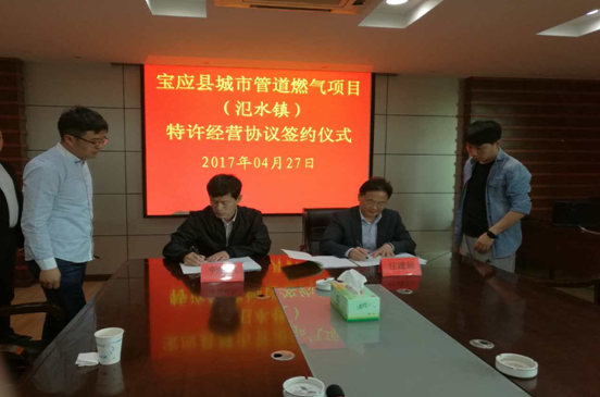 4月27日下午,中油燃氣投資集團有限公司在江蘇寶應泛水鎮舉行泛水鎮管道燃氣特許經營權簽約儀式。寶應縣城鄉和住房建設局王文慶一行領導,集團副總裁劉連勇,江蘇事業部總經理邢劍鋒以及相關領導出席簽約儀式。集團公司副總裁劉連勇、寶應縣城鄉和住房建設局王文慶分別代表中油燃氣投資集團與寶應縣泛水鎮人民政府簽訂《江蘇寶應縣泛水鎮管道燃氣特許經營協議》。