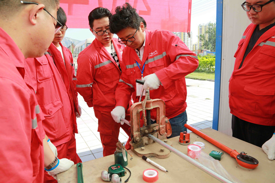 這次培訓由實操講師在工位元現場講授、操作演示,通過兩天的學習,學員初步掌握了繪製安裝施工圖、鍍鋅管手工切割、手工套絲,管道簡單安裝等方面的知識,著重提升對居民燃氣管道戶內安裝動手能力。學員們結合自身工作實踐,積極參與課程互動討論,提出自己的問題和見解,大家學技術、提技能的願望強烈,實操培訓收到良好效果。