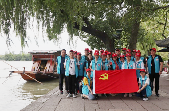 南湖因位於嘉興城南而得名,從唐朝起 ,便以“輕煙拂渚,微風欲來”的迷人景色,成為江南遊覽勝地。更重要的是一九二一年七月底,中國共產黨第一次全國代表大會在嘉興南湖的一艘普通遊船上續會,完成了最後議程,莊嚴向全世界宣告了中國共產黨的誕生,中國革命的航船就在這裡揚起征帆。嘉興南湖作為中共一大會址的組成部分和中國共產黨的誕生地而彪炳史冊,享譽海內外,成為全國人民嚮往的革命聖地。泰州公司的黨員和優秀員工代表們跟隨景區紅色導遊遊覽了整個南湖景區。紅船前,隨著導遊細緻的講解,大家重溫了中國共產黨艱難的建黨史,也勾起了一行人對近百年來中華民族一路奮勇向前的歷史思索和回憶。在鮮紅的黨旗的指引下,泰州公司同志們更是對“開天闢地、敢為人先的首創精神;堅定理想、百折不撓的奮鬥精神;立党為公,忠誠為民的奉獻精神”的“南湖精神”有了更加深刻的認識。
