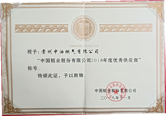 11月12日,貴州中油燃氣有限內向公司傳來欣喜的消息,公司獲得中國鋁業股份有限公司2018年度授予“優秀供應商稱號”榮譽,總經理徐權法代表公司參加授予儀式。