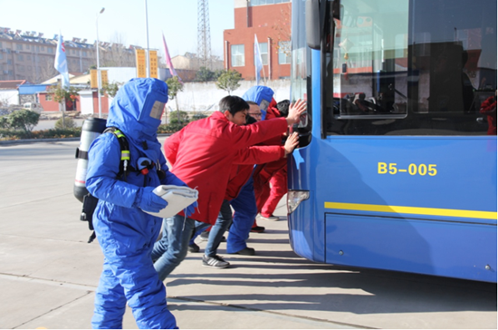 演練現場公車充裝過程中發生洩漏,演習人員當即按照《事故應急救援預案》展開應急處置,經過有序的應急處置後,事故現場得以控制,解除應急狀態,恢復正常運營。此次演練公司總經理黃鵬高度重視,安排周密,團結協作,有效的檢驗了整體協作能力和應急處置能力,為公司安全生產奠定了基礎。