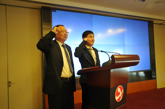 董事高發連宣讀了董事會決議:聘任羅強為中油燃氣投資集團有限公司副總裁、中油中泰燃氣投資集團有限公司副總裁,聘任胡壹為中油中泰燃氣投資集團有限公司副總裁;許鐵良主席向兩位高管頒發了聘任書;兩位高管作了任職宣誓並表態發言。