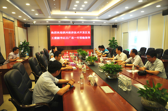 劉連勇總裁歡迎王廣忠副書記一行來集團總部訪問,之後簡要介紹了集團業務開展情況,對雙方前期務實合作取得的成果表示滿意,希望繼續加強與開發區的工作協調,努力做好服務和保障。