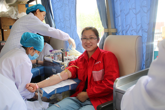 一切準備工作完畢後,獻血員工們在血站工作人員的指導下,認真填寫獻血記錄表、測量血壓、抽血化驗,經血液檢測合格後向血站無償獻血。