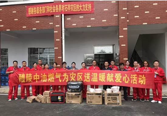 洪水退後,風景秀麗的醴陵市如今一片狼藉,醴陵公司孕育於醴陵,成長於醴陵,並紮根於醴陵,每位中油燃氣人更無比摯愛著醴陵這片土地,我們的中油燃氣集團是一個溫暖的的大家庭,在這個大家裡真切的感受到了愛與真情,也願意將這份溫暖的愛傳遞給社會,所以在這特殊的時刻,和災區的群眾們心連心,手牽手,在公司總經理郭林的強烈感召下,自發組織公司全體幹部職工向災區伸出援手,組織開展了募捐活動。真愛無聲,大愛無言,患難才見真情,募捐活動後,在公司黨支部書記的帶領下繼續深入到受災較嚴重的石亭鎮,為災區送去5台發電機、5台潛水泵等價值10000元的實用性物資,並帶著全體職工及黨支部的愛心捐款30000元送上真摯的關懷,這些數字並不能代表什麼,但卻飽含了中油燃氣人沉甸甸的情感。此次“愛心捐助、傳遞真情”活動,是醴陵中油燃氣全體職工將愛心凝聚成為受災群眾們戰勝災難、恢復生產的現實動力,也在醴陵當地起到了號召示範作用,得到了社會各界的一致好評。