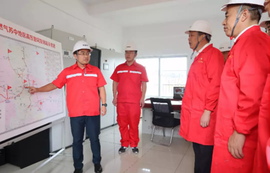戴區長在總經理丁濤的陪同下,先後視察了薑堰調壓計量站以及站內管道工藝區,對天然氣輸送監控、大唐配套項目以及中俄東線管道位置作了全面瞭解;戴區長指出,泰州中油管輸作為姜堰區的重點民生企業,承擔著為姜堰華潤、大唐電廠平穩輸送天然氣的重要任務,為姜堰區的安全保障工作做出了貢獻。