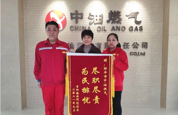 近期,鄒平市青陽鎮西窩陀社區一居民用戶向鄒平中油燃氣有限責任公司送來一面寫有“盡職盡責,為民排憂”的錦旗,對公司員工高效、貼心的服務表示感謝。