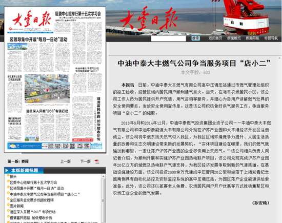 中油中泰大豐燃氣公司爭當服務“店小二”